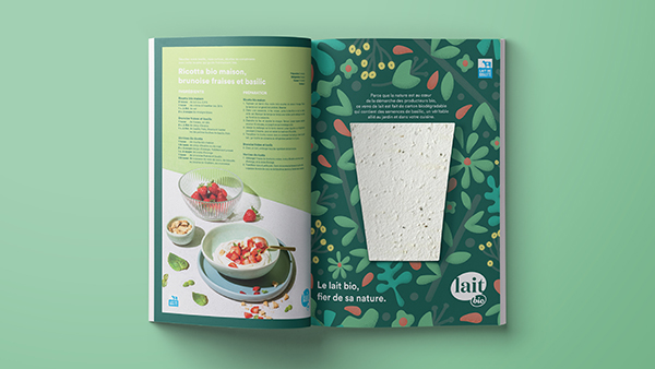 Il était essentiel pour les Producteurs de lait biologique que leurs actions marketing soient cohérentes avec leur pratique. Ainsi, en publicité, la proximité des producteurs avec la nature s’exprimera via des créatifs complètement biodégradables.
