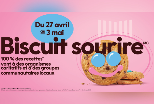 TORONTO – De retour le 27 avril, l’emblématique campagne du Biscuit sourire de Tim Hortons célèbre son 30e anniversaire, avec plus de 151 millions de dollars recueillis depuis 1996. Dans le cadre de cette campagne, la totalité des recettes est versée à plus de 700 organismes caritatifs et communautaires au Canada, choisit par les propriétaires de restaurant Tim Hortons.