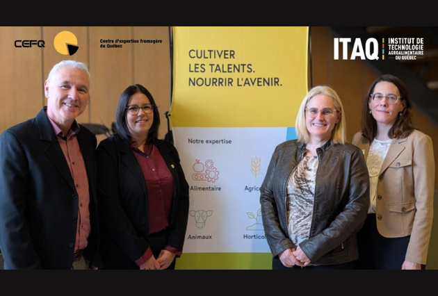 SAINT-HYACINTHE, QC – L’Institut de technologie agroalimentaire du Québec (ITAQ) et le Centre d’expertise fromagère du Québec (CEFQ) annoncent la mise en place d’un partenariat stratégique visant à renforcer la compétitivité et la résilience de la filière laitière québécoise.