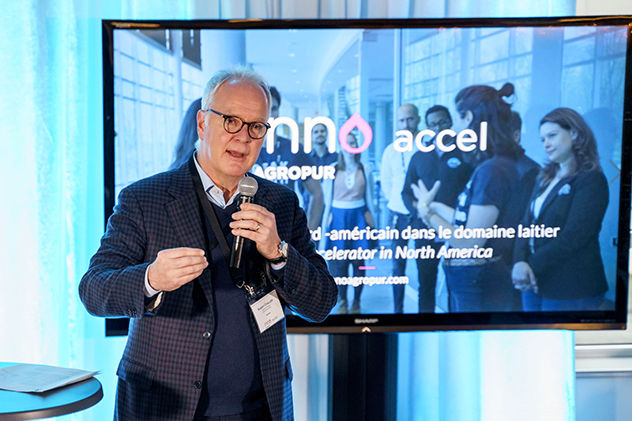 « Les conditions de marché mondiales, qui sont hautement compétitives, et le contexte économique mondial, notamment l’AEUMC, commandent aux entreprises de constamment remettre en question les façons de faire. Ainsi, l’innovation est une nécessité, voire une condition de survie pour toute la filière laitière. Pour Agropur qui célèbre son 80e anniversaire et qui est résolument tournée vers le futur, il est essentiel de proposer de nouvelles avenues pour réinventer les produits laitiers aux débouchés et développer à cet effet de nouvelles alliances pour la production laitière avec des partenaires qui sont caractérisés par leur inventivité et leur