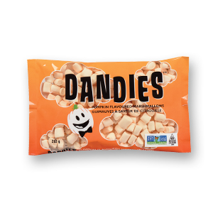 Jusqu’à la fin octobre, la compagnie Dandies offre ses nouvelles guimauves à saveur de citrouilles. Tout comme ces guimauves originales à la vanille, les guimauves à la citrouille de Dandies sont 100% végétaliennes et ne contiennent ni gélatine, ni sirop de maïs à haute teneur en fructose, ni arômes ni colorants artificiels. Produites dans des installations dédiées à la production d’aliments végétaliens, ces friandises sont exemptes des allergènes habituels: gluten, blé, produits laitiers, œufs, maïs, arachides, noix et ne contiennent pas de gluten.Chaque paquet de 283 grammes est disponible au coût de 4,99$.