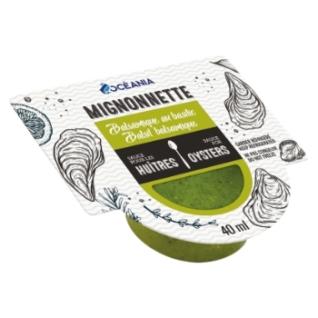 Il s’agit de trois sauces présentées dans des godets de 40 ml qui ont pour but de rehausser le goût de la dégustation d’huîtres : Mignonnette Balsamique et Basilic, Mignonnette Bloody Mary et Mignonnette Classique.