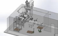 Kit de mélange, composé d’une tour élévatrice pour palettes/sacs à mélanger, avec passerelles et sécurité avant le mélangeur horizontal programmable, sortie vers ensachage volumétrique ou lourd. Lire la suite >>